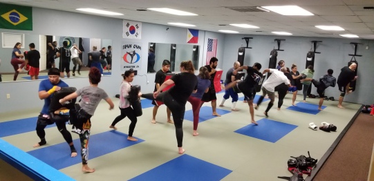 Students learn the use of Heavy Bags, Focus Mitts, Thai Pads along with Kicking Shields. The training is accompanied by training rounds of 2 to 3 minute durations excellent for conditioning and burning major calories. Sparring is encouraged, but only when the student is ready and at the discretion of the instructor.